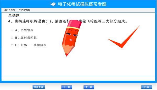 摘要: 整个模拟试题库共有800道练习题,共分为8套,每套100道练习题(70道单选题,20道多选题,10道判断题),答对60%即可通过学习。